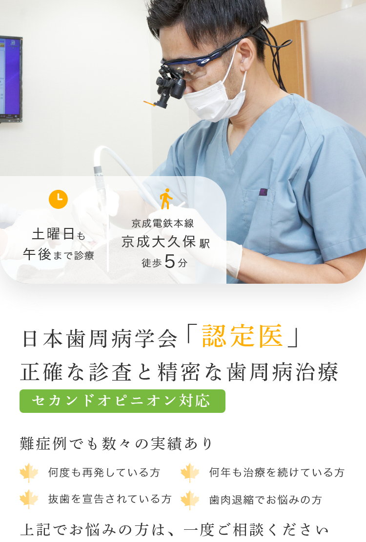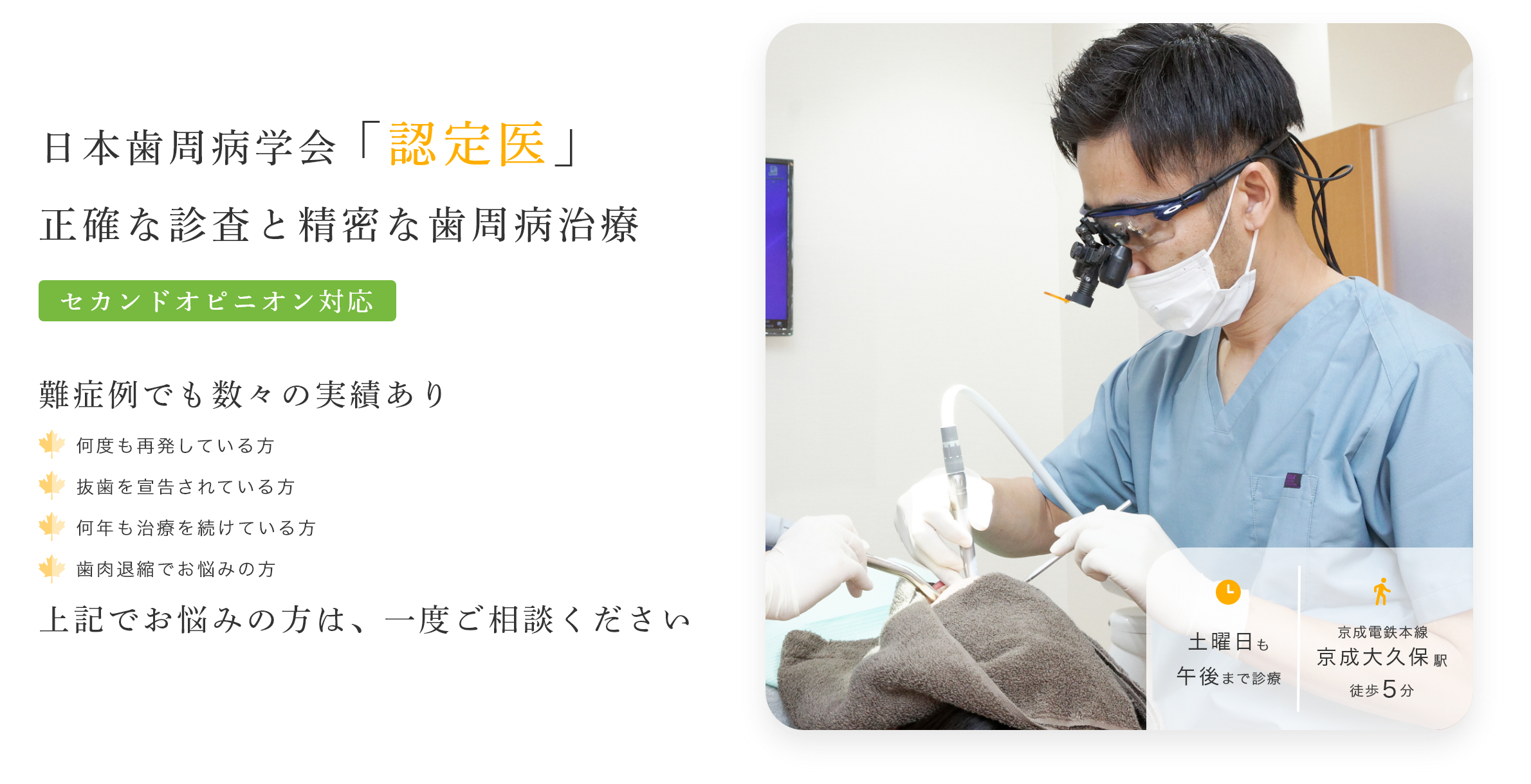 専門的な知識と治療経験があり、再生療法や歯肉の移植などにも対応することが可能です。
